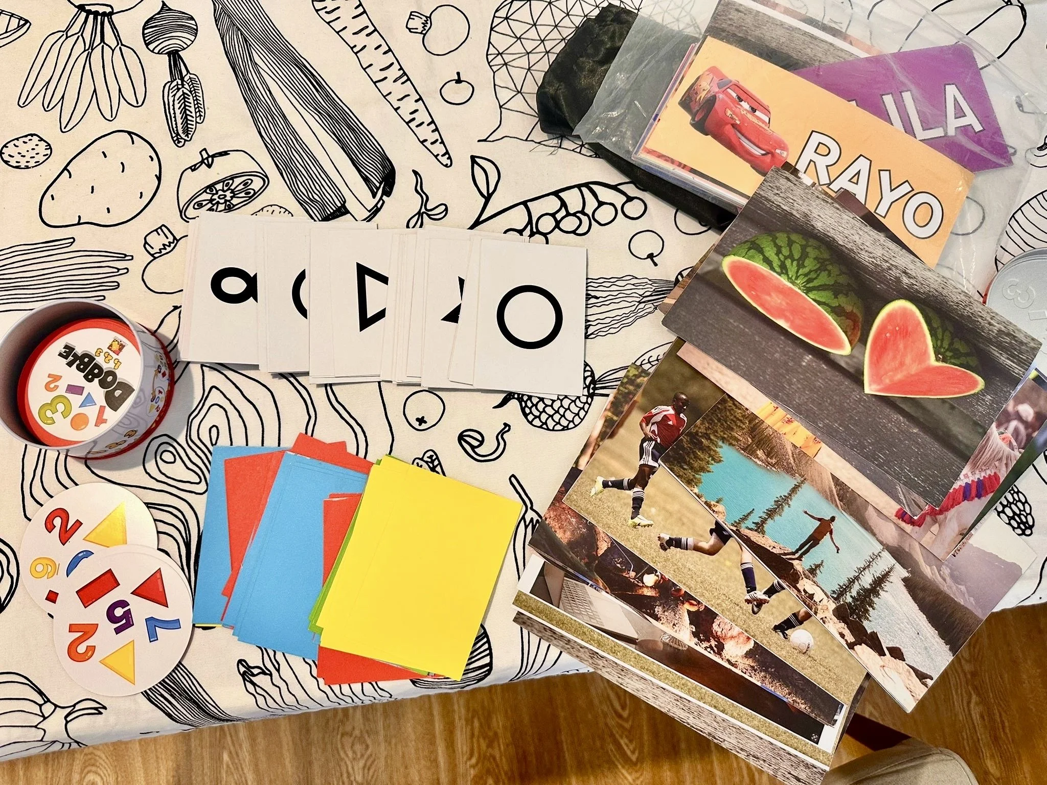 Buy blue, red, yellow, and green card stock. Cut them to the size of playing cards. Prepare at least 5 cards of each color for the classification exercises.